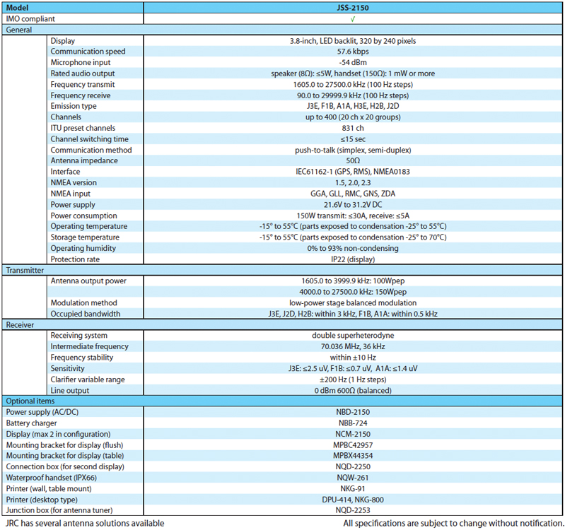 JRC has the ability to cost-effectively monitor performance and functionality of the JSS-2150/2250/2500 while at sea, significantly reducing downtime and maintenance costs.